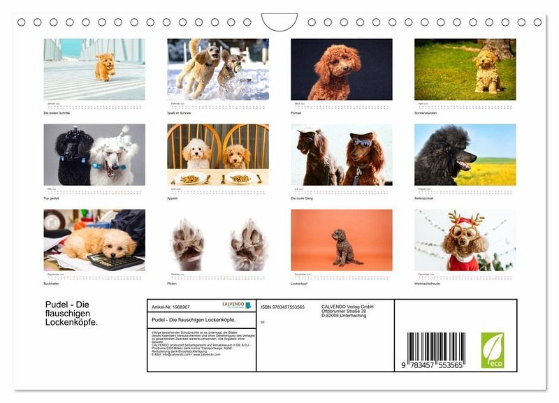 Kuschelig, flauschig, lockig. Das sind die Adjektive die auf alle Pudel passen. Dieser Kalender zeigt 12 niedliche und witzige Aufnahmen der süßen Vierbeiner.