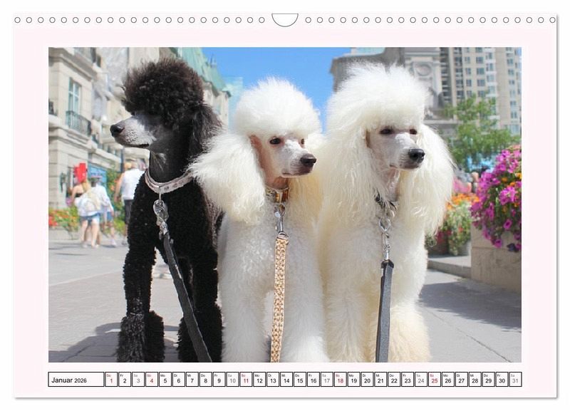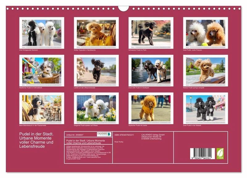 Dieser Kalender zeigt stilvolle, niedliche und extravagante Pudel in urbanen Kulissen. Die Bilder erzählen vom entspannten und aktiven Leben der Hunde inmitten der Stadt. Ob beim Bummeln, Spielen oder Kaffeetrinken - die Pudel bezaubern mit ihrer Eleganz und Lebensfreude. Alle Bilder wurden mit der Hilfe von KI erstellt und sind perfekt für alle Hundefreunde, die zauberhafte Pudel und das Leben in der Stadt lieben.