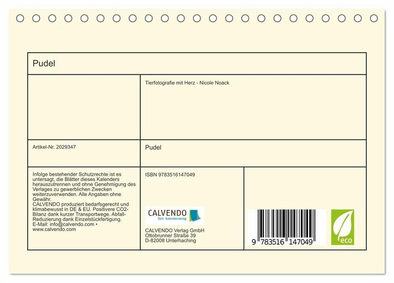 In diesem Kalendarium finden Sie 13 liebevoll ausgesuchte Pudel Motive. Vom Groß- bis zum Kleinpudel, vom Welpen bis zum sattlichen Rüden. Natürlich darf auch der Golden- und Labradoodle in diesem bunten Sortiment nicht fehlen.
