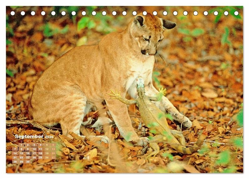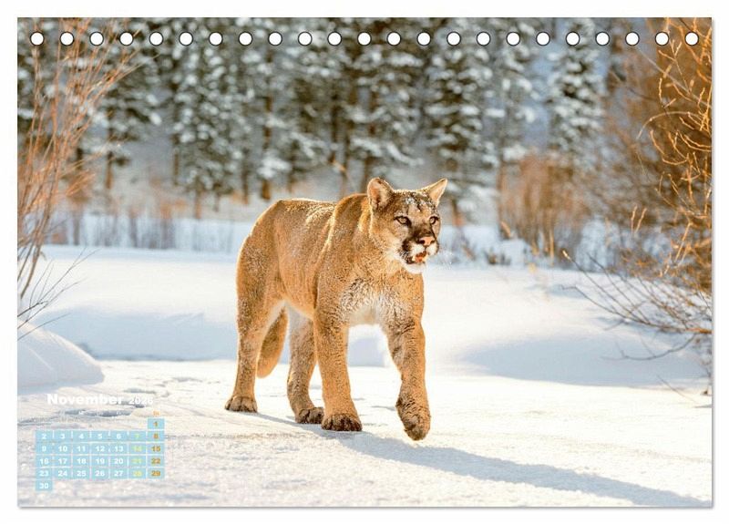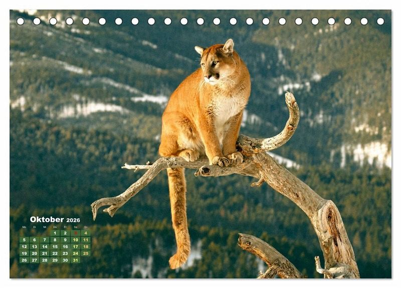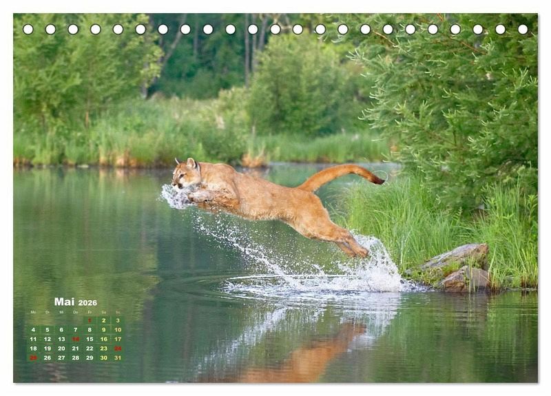 Der Puma wird auch Silberlöwe, oder Cougar in den USA genannt. Kraftvoll, elegant und geschmeidig geht ein Puma auf die Jagd. - Erleben Sie in diesem beeindruckenden Kalender den oftmals rauhen Lebensraum der wunderschönen Raubkatze. Faszinierende Porträts eines Pumas im Sprung, auf der Pirsch und beim Klettern geben einen besonderen Einblick in die Welt der wilden Großkatzen.
