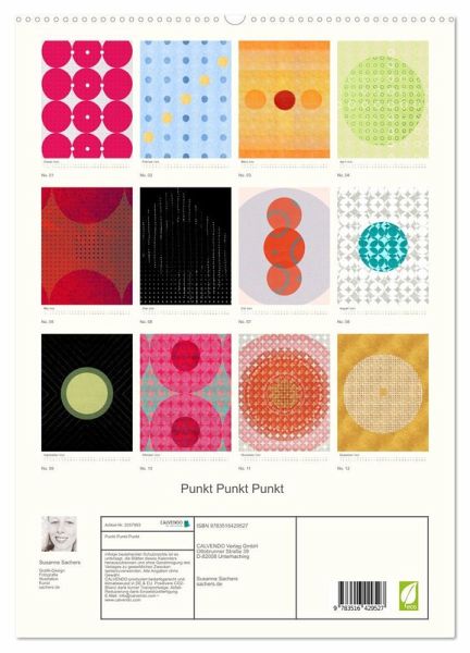 PREMIUM-LINIE - Brillanter Fotokalender mit 12 wunderschönen Motiven, Kunstdruck in Hochglanz in Museumsqualität.QUALITÄT - edle Materialien, stabile Rückwand mit 2 innovativen Einstecktaschen für eine optimale Präsentation an der Wand.NACHHALTIG - deutliche Abfallreduzierung durch bedarfsgerechte Einzelstückfertigung, umweltfreundliches FSC-zertifiziertes Papier, Produktion in Deutschland, klimabewusste Logistik.PERFEKTES GESCHENK - Kalender für Freunde und Familie, für Kinder und Erwachsene, jung und alt, zu Weihnachten, Geburtstag oder zwischendurch.Punkte ... farbenfroh, klar und modern interpretiert von Autor(in): Susanne Sachers