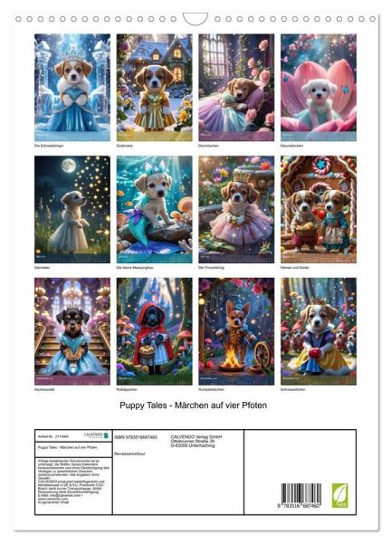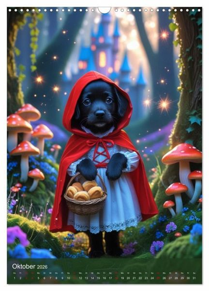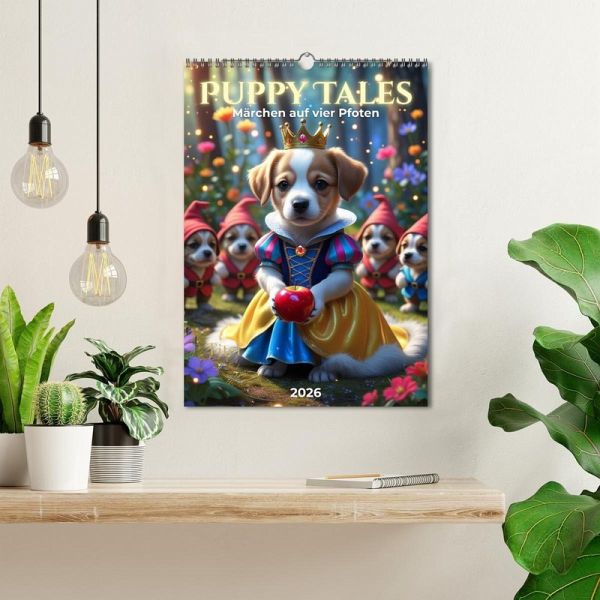 Die detailreichen Illustrationen verbinden klassische Märchenmotive mit der unwiderstehlichen Niedlichkeit von Hunden und machen diesen Kalender zu einem besonderen Begleiter durch das Jahr 2026. Ob für Märchenfreunde, Hundeliebhaber oder einfach für Menschen, die Freude an fantasievoller Kunst haben - dieser Kalender ist ein echtes Highlight an jeder Wand. Der Kalender ist mit Unterstützung von KI entstanden.