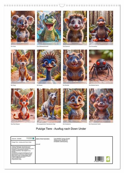 Entdecken Sie die wilde und verspielte Seite Australiens mit unserem KI-Kalender! Dieser Kalender zeigt Monat für Monat süße, verrückte und liebevoll animierte Kängurus, Koalas, Wombats und viele mehr in farbenfrohen, humorvollen Illustrationen. Perfekt für alle, die die einzigartige Tierwelt Australiens auf eine lustige und charmante Art genießen möchten!