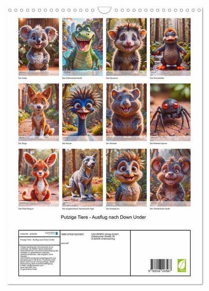 QUALITÄT - Hochwertiger Fotokalender mit 12 wunderschönen Motiven auf lichtbeständigem Bilderdruckpapier, robuste Spiralbindung mit Aufhängebügel.NACHHALTIG - deutliche Abfallreduzierung durch bedarfsgerechte Einzelstückfertigung, umweltfreundliches FSC-zertifiziertes Papier, Produktion in Deutschland, klimabewusste Logistik.PERFEKTES GESCHENK - Kalender für Freunde und Familie, für Kinder und Erwachsene, jung und alt, zu Weihnachten, Geburtstag oder zwischendurch.VIELFALT - Bildkalender in verschiedenen Formaten, z.B. DIN A5, DIN A4, DIN A3 sowie DIN A2. Ob Naturmotiv, Gemälde oder Fotos, ideal für einpersönliches Wohlfühlambiente.Der Kalender zeigt ein Jahr lang süße, verrückte und liebevoll animierte australische Tiere, die mit ihren farbenfrohen Illustrationen für Spaß und gute Laune sorgen. von Autor(in): Fabian Junge