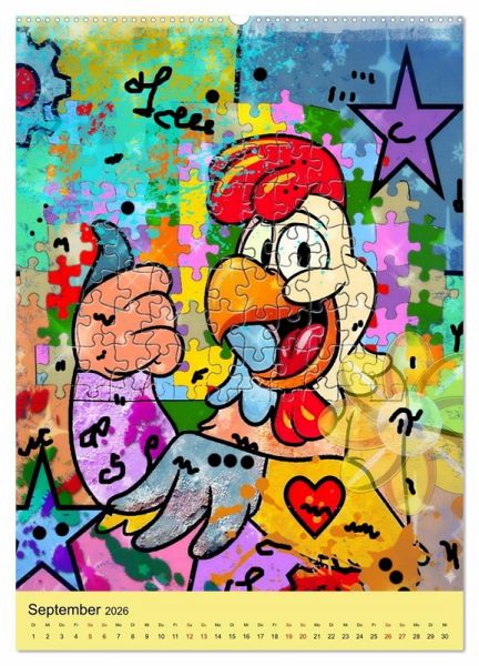 Der Pop Art Künstler Nico Bielow, der 6 Jahre in den USA lebte, hat seine Pop Art Bilder in ganz viele kleine Puzzelteile verarbeitet. Rausgekommen ist ein bunter Kalender, der jedem etwas Freude bringen soll.