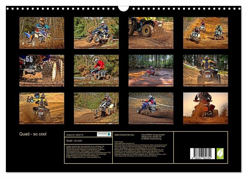 QUALITÄT - Hochwertiger Fotokalender mit 12 wunderschönen Motiven auf lichtbeständigem Bilderdruckpapier, robuste Spiralbindung mit Aufhängebügel.NACHHALTIG - deutliche Abfallreduzierung durch bedarfsgerechte Einzelstückfertigung, umweltfreundliches FSC-zertifiziertes Papier, Produktion in Deutschland, klimabewusste Logistik.PERFEKTES GESCHENK - Kalender für Freunde und Familie, für Kinder und Erwachsene, jung und alt, zu Weihnachten, Geburtstag oder zwischendurch.VIELFALT - Bildkalender in verschiedenen Formaten, z.B. DIN A5, DIN A4, DIN A3 sowie DIN A2. Ob Naturmotiv, Gemälde oder Fotos, ideal für ein persönliches Wohlfühlambiente.Quadfahren - unbeschreibliches Fahrgefühl mit viel Suchtpotenzial. von Autor(in): Peter Roder