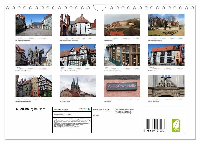 QUALITÄT - Hochwertiger Fotokalender mit 12 wunderschönen Motiven auf lichtbeständigem Bilderdruckpapier, robuste Spiralbindung mit Aufhängebügel.NACHHALTIG - deutliche Abfallreduzierung durch bedarfsgerechte Einzelstückfertigung, umweltfreundliches FSC-zertifiziertes Papier, Produktion in Deutschland, klimabewusste Logistik.PERFEKTES GESCHENK - Kalender für Freunde und Familie, für Kinder und Erwachsene, jung und alt, zu Weihnachten, Geburtstag oder zwischendurch.VIELFALT - Bildkalender in verschiedenen Formaten, z.B. DIN A5, DIN A4, DIN A3 sowie DIN A2. Ob Naturmotiv, Gemälde oder Fotos, ideal für ein persönliches Wohlfühlambiente.Die UNESCO-Welterbestadt Quedlinburg im Harz. von Autor(in):Jörg Sabel
