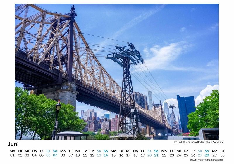 Entdecken Sie die Vielfalt und den Charme von Queens, New York, mit unserem exklusiven Wandkalender! Lassen Sie sich Monat für Monat von 12 atemberaubenden Motiven dieses einzigartigen Stadtteils inspirieren - von urbanen Skylines bis hin zu versteckten Oasen. Gedruckt auf hochwertigem, lichtbeständigem Bilderdruckpapier, bringt dieser Kalender die pulsierende Energie von Queens direkt in Ihr Zuhause. Nachhaltig in Deutschland auf FSC-zertifiziertem Papier produziert, vereint er Qualität und Umweltbewusstsein. Perfekt für alle, die New York lieben oder sich einfach von der Magie dieser Metropole verzaubern lassen möchten. Holen Sie sich jetzt Ihr Stück Queens an die Wand! Hochwertig Erleben Sie ein Jahr voller Eleganz mit unserem Premium-Fotokalender. Jedes der 12 Motive ist auf hochwertigem, lichtbeständigem Bilderdruckpapier gedruckt, um die Lebendigkeit jedes Bildes zu bewahren. Die robuste Spiralbindung gewährleistet Langlebigkeit und einfache Handhabung. Nachhaltig Unser Engagement für die Umwelt spiegelt sich in jedem Exemplar wider. Durch die Produktion auf Abruf reduzieren wir signifikant unseren Abfall. Wir verwenden ausschließlich umweltfreundliches, FSC-zertifiziertes Papier. Stolz gefertigt in Deutschland, achten wir bei unserer Logistik auf Klimaschutz, um unseren ökologischen Fußabdruck zu minimieren. Das ideale Geschenk Dieser Kalender ist das perfekte Präsent für jeden Anlass - ob Weihnachten, Geburtstage oder einfach als liebevolle Aufmerksamkeit zwischendurch. Geeignet für Freunde, Familie, Kinder und Erwachsene gleichermaßen, bereichert er jedes Zuhause mit seiner Vielfalt und Schönheit, unabhängig vom Alter der Beschenkten.