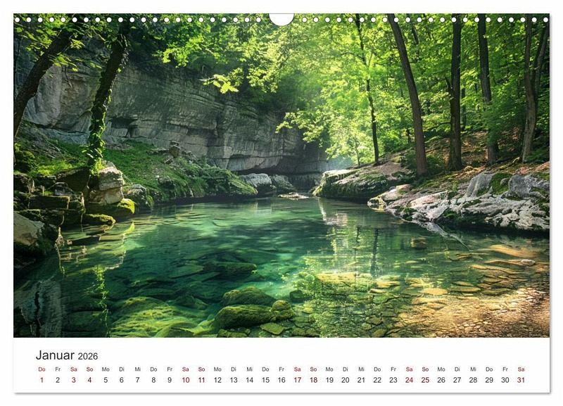 Erleben Sie die Faszination natürlicher Wasserlandschaften mit unserem KI - generierten Kalender "Quelle des Lebens - Wasser und Landschaft". Jeder Monat enthüllt eine neue Szenerie von glitzernden Seen, rauschenden Flüssen und tosenden Kakaden! Tauchen Sie ein in die erfrischende Welt des Wassers und lassen Sie sich von der Schönheit der Natur begeistern. Ideal als Geschenk für Natur- und Fotoliebhaber! Holen Sie sich Ihren Kalender und genießen Sie das ganze Jahr über die beruhigende Präsenz von Wasser und Landschaft.