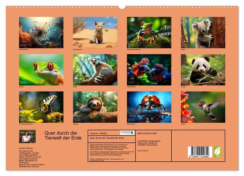 PREMIUM-LINIE - Brillanter Fotokalender mit 12 wunderschönen Motiven, Kunstdruck in Hochglanz in Museumsqualität.QUALITÄT - edle Materialien, stabile Rückwand mit 2 innovativen Einstecktaschen für eine optimale Präsentation an der Wand.NACHHALTIG - deutliche Abfallreduzierung durch bedarfsgerechte Einzelstückfertigung, umweltfreundliches FSC-zertifiziertes Papier, Produktion in Deutschland, klimabewusste Logistik.PERFEKTES GESCHENK - Kalender für Freunde und Familie, für Kinder und Erwachsene, jung und alt, zu Weihnachten, Geburtstag oder zwischendurch.Mal nicht die üblichen Tierarten im Portrait von Autor(in): Kerstin Waurick