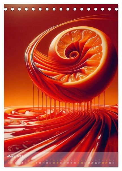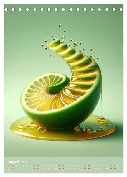 Jede Frucht trägt ein faszinierendes Treppenmuster in sich, das Tiefe und Dynamik verleiht - ein visuelles Spiel aus Struktur und Süße. Dieser Kalender ist ein Fest für die Sinne, ein Hingucker für Küche, Büro oder Atelier, und ein täglicher Reminder, dass selbst das Gewöhnlichste außergewöhnlich sein kann.