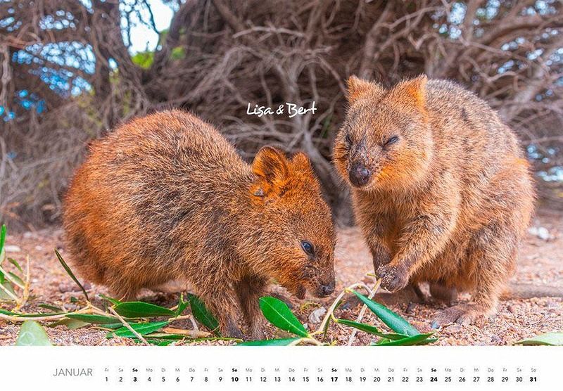 Gute Laune fürs ganze Jahr! Quokkas sind voll im Trend. Die Welt kann gar nicht genug von diesen stets gut gelaunten Mini-Kängurus bekommen. Unser Kalender zeigt das Leben der Beuteltiere und gibt jeden Monat einen erheiternden Fakt dazu. Was fressen Quokkas eigentlich? Wie leben sie untereinander? Und wie nervig sind die neugierigen Tiere für die ortsansässige Bevölkerung?