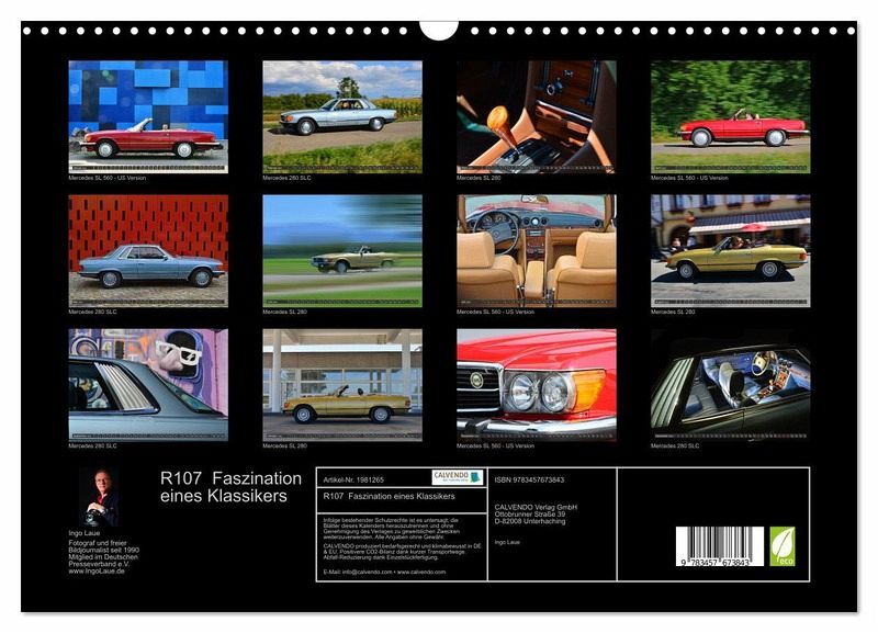 Mercedes Benz R107, dieser deutsche Sportwagen, zieht heute wie früher die Blicke vieler Autofans auf sich. Die zeitlose und keilförmige Eleganz des Wagens hat den Fotografen Ingo Laue inspiriert eine Fotoserie zu produzieren. Ein Kalender der sicher das ganze Jahr viel Freude bereitet.