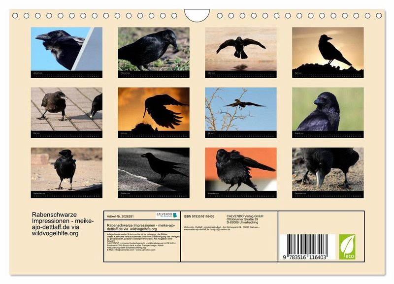 QUALITÄT - Hochwertiger Fotokalender mit 12 wunderschönen Motiven auf lichtbeständigem Bilderdruckpapier, robuste Spiralbindung mit Aufhängebügel.NACHHALTIG - deutliche Abfallreduzierung durch bedarfsgerechte Einzelstückfertigung, umweltfreundliches FSC-zertifiziertes Papier, Produktion in Deutschland, klimabewusste Logistik.PERFEKTES GESCHENK - Kalender für Freunde und Familie, für Kinder und Erwachsene, jung und alt, zu Weihnachten, Geburtstag oder zwischendurch.VIELFALT - Bildkalender in verschiedenen Formaten, z.B. DIN A5, DIN A4, DIN A3 sowie DIN A2. Ob Naturmotiv, Gemälde oder Fotos, ideal für ein persönliches Wohlfühlambiente.Faszination Rabenvögel - Corvidae von Autor(in): Emma Rabe