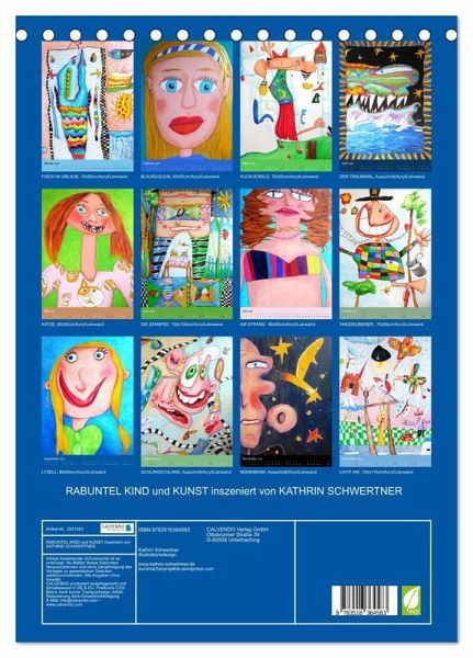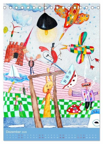 Diese farbenfroh-fantastischen Lichtblicke bezaubern das Gemüt und garantieren gute Laune! Die Künstlerin Kathrin Schwertner fängt frühkindliche Ideen ein und setzt sie professionell mit Pinsel und Acrylfarbe auf Leinwand groß in Szene. Holen sie sich eine Kunstausstellung an die eigenen Wände und lassen Sie sich inspirieren! Tip zum Upcycling: die Papierqualität des Kalenders ist so gut, dass die Motive auch einzeln perfekt rahmbar sind.