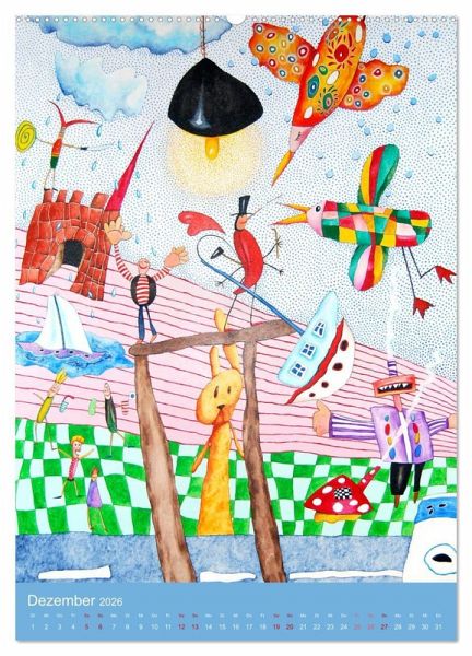 Diese farbenfroh-fantastischen Lichtblicke bezaubern das Gemüt und garantieren gute Laune! Die Künstlerin Kathrin Schwertner fängt frühkindliche Ideen ein und setzt sie professionell mit Pinsel und Acrylfarbe auf Leinwand groß in Szene. Holen sie sich eine Kunstausstellung an die eigenen Wände und lassen Sie sich inspirieren! Tip zum Upcycling: die Papierqualität des Kalenders ist so gut, dass die Motive auch einzeln perfekt rahmbar sind.
