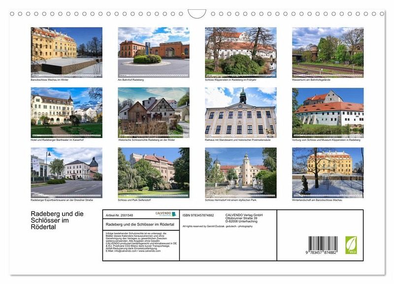QUALITÄT - Hochwertiger Fotokalender mit 12 wunderschönen Motiven auf lichtbeständigem Bilderdruckpapier, robuste Spiralbindung mit Aufhängebügel.NACHHALTIG - deutliche Abfallreduzierung durch bedarfsgerechte Einzelstückfertigung, umweltfreundliches FSC-zertifiziertes Papier, Produktion in Deutschland, klimabewusste Logistik.PERFEKTES GESCHENK - Kalender für Freunde und Familie, für Kinder und Erwachsene, jung und alt, zu Weihnachten, Geburtstag oder zwischendurch.VIELFALT - Bildkalender in verschiedenen Formaten, z.B. DIN A5, DIN A4, DIN A3 sowie DIN A2. Ob Naturmotiv, Gemälde oder Fotos, ideal für ein persönliches Wohlfühlambiente.Vier Schlösser bereichern das Rödertal von Autor(in): Gerold Dudziak