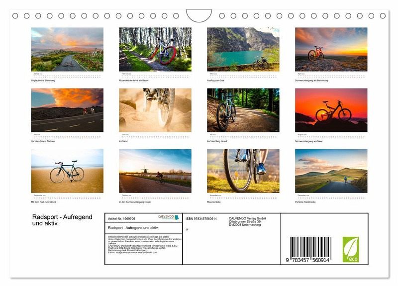 Egal ob man lieber in der Stadt oder am Land unterwegs ist, mit dem Rad gibt es so viel zu entdecken. Dieser Kalender zeigt 12 tolle Fotos von wunderschönen Radstrecken und Detailaufnahmen, da bekommen Sie Lust auf Ihr Rad zu steigen und einfach loszufahren.