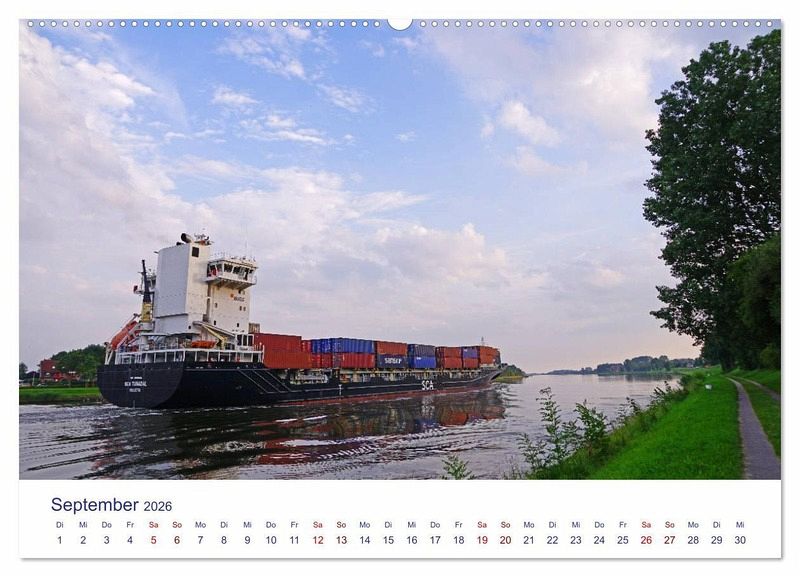 September: Nord Ostsee Kanal in Rendsburg mit Containerschiff