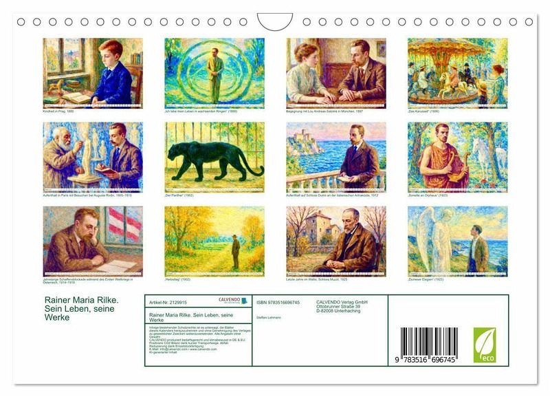 Dieser Literaturkalender zeigt Rainer Maria Rilke in einzigartigen impressionistischen Szenen: seine wichtigsten Lebensstationen ebenso wie zentrale Momente seines Schaffens. Die warmen Farben und lebendigen Pinselstriche der Bilder, die Steffani Lehmann mit Unterstützung einer KI editiert hat, fangen die Atmosphäre seiner Zeit ein und machen die Nähe zwischen Dichter und Kunst spürbar.