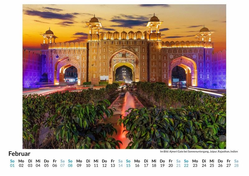 Entdecken Sie die faszinierende Schönheit Rajasthans mit unserem exklusiven Wandkalender! Lassen Sie sich Monat für Monat von 12 atemberaubenden Motiven aus dem farbenprächtigen Indien verzaubern - von majestätischen Palästen bis hin zu den endlosen Weiten der Wüste Thar. Gedruckt auf hochwertigem, lichtbeständigem Bilderdruckpapier, bringt dieser Kalender die Magie Rajasthans direkt in Ihr Zuhause. Nachhaltig in Deutschland auf FSC-zertifiziertem Papier produziert, vereint er Ästhetik und Umweltbewusstsein. Perfekt als Geschenk oder für Ihre eigenen vier Wände - holen Sie sich ein Stück Indien nach Hause und lassen Sie sich inspirieren! Hochwertig Erleben Sie ein Jahr voller Eleganz mit unserem Premium-Fotokalender. Jedes der 12 Motive ist auf hochwertigem, lichtbeständigem Bilderdruckpapier gedruckt, um die Lebendigkeit jedes Bildes zu bewahren. Die robuste Spiralbindung gewährleistet Langlebigkeit und einfache Handhabung. Nachhaltig Unser Engagement für die Umwelt spiegelt sich in jedem Exemplar wider. Durch die Produktion auf Abruf reduzieren wir signifikant unseren Abfall. Wir verwenden ausschließlich umweltfreundliches, FSC-zertifiziertes Papier. Stolz gefertigt in Deutschland, achten wir bei unserer Logistik auf Klimaschutz, um unseren ökologischen Fußabdruck zu minimieren. Das ideale Geschenk Dieser Kalender ist das perfekte Präsent für jeden Anlass - ob Weihnachten, Geburtstage oder einfach als liebevolle Aufmerksamkeit zwischendurch. Geeignet für Freunde, Familie, Kinder und Erwachsene gleichermaßen, bereichert er jedes Zuhause mit seiner Vielfalt und Schönheit, unabhängig vom Alter der Beschenkten.