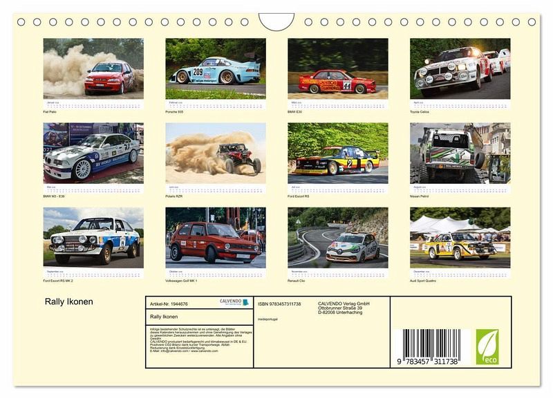 Der Rallysport begeistert viele Internationale Zuschauer. Es gibt rasante Szenen der PS starken Autos. Wir haben unsere schönsten Aufnahmen aus dem Rallysport in diesem Kalender zusammengetragen. Grossartige Autos aus verschiedenen Zeitepochen.