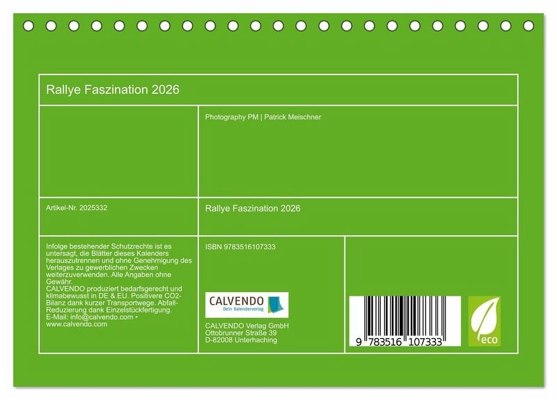 Der Rallye-Sport zeichnet sich vor Allem durch die breite an Fahrzeugen und die Nähe zu den Fans aus. Dieser Kalender ist durch seine Vielfalt von Eindrücken der Rallye ganz nah und begleitet jedes Team, jeden Fahrer und Fan dieses einzigartigen Sports durch das ganze Jahr.