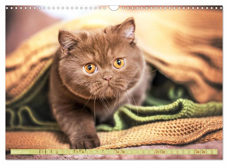 The British Shorthair cat is one of the most popular cat breeds in the world. They enchant not only with their character, but also with their bear-like appearance. They are now available in many different colors and eye colors. You can admire the rarest specimens in this calendar.