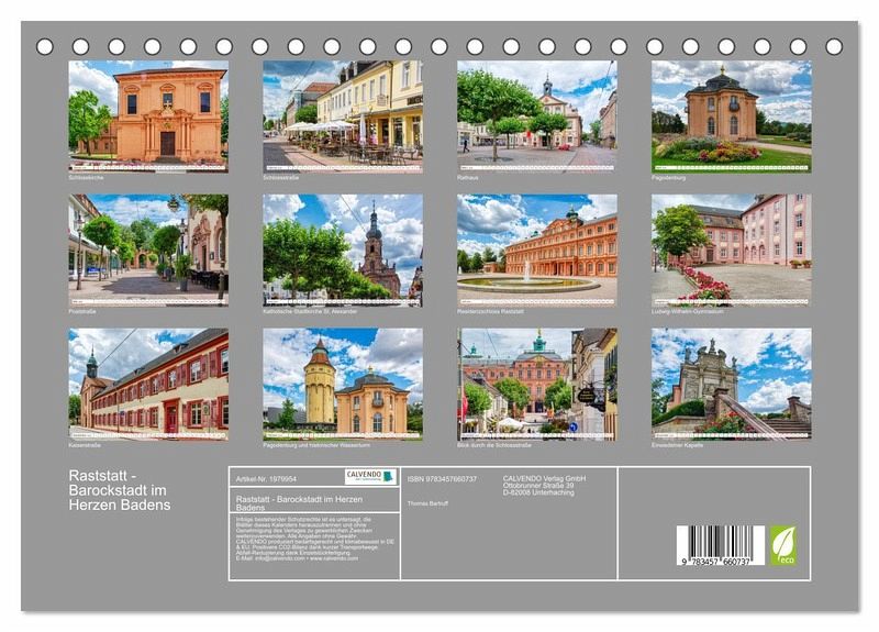 QUALITÄT - Hochwertiger Fotokalender mit 12 wunderschönen Motiven auf lichtbeständigem Bilderdruckpapier, robuste Spiralbindung.NACHHALTIG - deutliche Abfallreduzierung durch bedarfsgerechte Einzelstückfertigung, umweltfreundliches FSC-zertifiziertes Papier, Produktion in Deutschland, klimabewusste Logistik.PERFEKTES GESCHENK - Kalender für Freunde und Familie, für Kinder und Erwachsene, jung und alt, zu Weihnachten, Geburtstag oder zwischendurch.VIELFALT - Bildkalender in verschiedenen Formaten, z.B. DIN A5, DIN A4, DIN A3sowie DIN A2. Ob Naturmotiv, Gemälde oder Fotos, ideal für ein persönliches Wohlfühlambiente.Spaziergang durch die schöne Barockstadt Raststatt von Autor(in): Thomas Bartruff