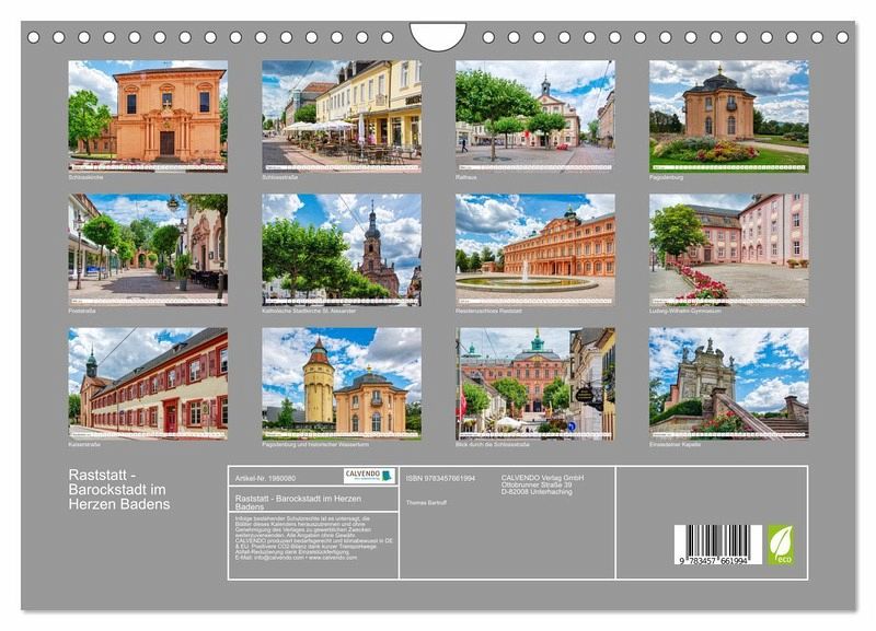 QUALITÄT - Hochwertiger Fotokalender mit 12 wunderschönen Motiven auf lichtbeständigem Bilderdruckpapier, robuste Spiralbindung mit Aufhängebügel.NACHHALTIG - deutliche Abfallreduzierung durch bedarfsgerechte Einzelstückfertigung, umweltfreundliches FSC-zertifiziertes Papier, Produktion in Deutschland, klimabewusste Logistik.PERFEKTES GESCHENK - Kalender für Freunde und Familie, für Kinder und Erwachsene, jung und alt, zu Weihnachten, Geburtstag oder zwischendurch.VIELFALT - Bildkalender in verschiedenen Formaten, z.B. DIN A5, DIN A4, DIN A3 sowie DIN A2. Ob Naturmotiv, Gemälde oder Fotos, ideal für ein persönliches Wohlfühlambiente.Spaziergang durch die schöne Barockstadt Raststatt von Autor(in): Thomas Bartruff