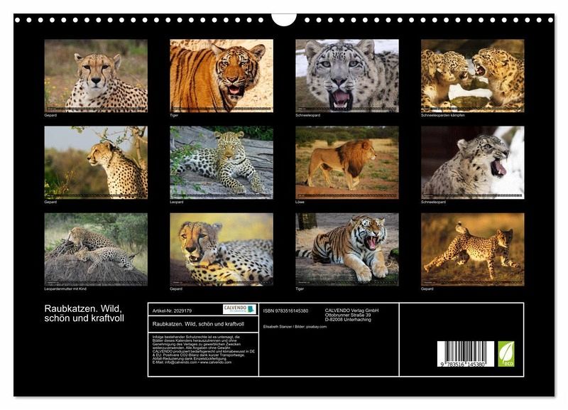 QUALITÄT - Hochwertiger Fotokalender mit 12 wunderschönen Motiven auf lichtbeständigem Bilderdruckpapier, robuste Spiralbindung mit Aufhängebügel.NACHHALTIG - deutliche Abfallreduzierung durch bedarfsgerechte Einzelstückfertigung, umweltfreundliches FSC-zertifiziertes Papier, Produktion in Deutschland, klimabewusste Logistik.PERFEKTES GESCHENK - Kalender für Freunde und Familie, für Kinder und Erwachsene, jung und alt, zu Weihnachten, Geburtstag oder zwischendurch.VIELFALT - Bildkalender in verschiedenen Formaten, z.B. DIN A5, DIN A4, DIN A3 sowie DIN A2. Ob Naturmotiv, Gemälde oder Fotos, ideal für ein persönliches Wohlfühlambiente.Die schönsten Raubkatzen in tollen Bildern von Autor(in): Elisabeth Stanzer