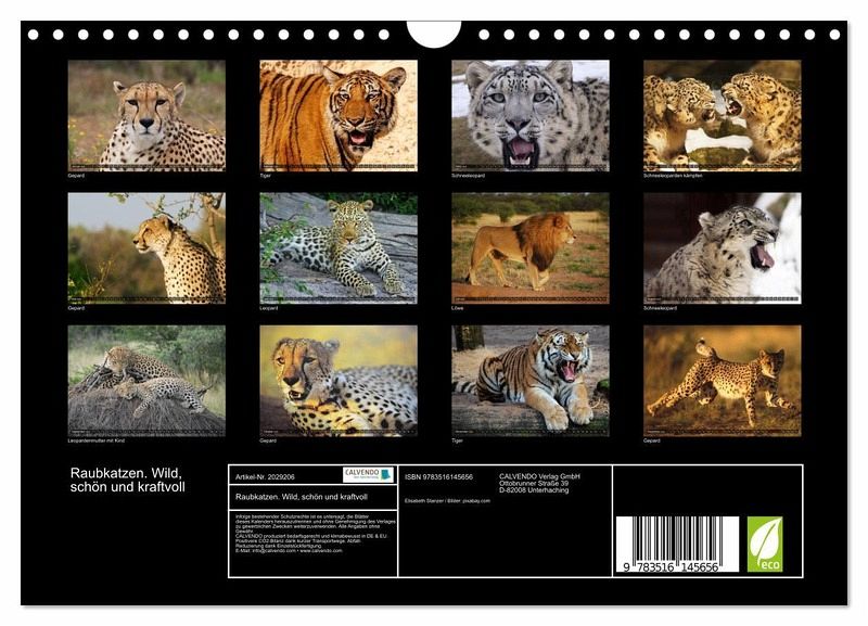 QUALITÄT - Hochwertiger Fotokalender mit 12 wunderschönen Motiven auf lichtbeständigem Bilderdruckpapier, robuste Spiralbindung mit Aufhängebügel.NACHHALTIG - deutliche Abfallreduzierung durch bedarfsgerechte Einzelstückfertigung, umweltfreundliches FSC-zertifiziertes Papier, Produktion in Deutschland, klimabewusste Logistik.PERFEKTES GESCHENK - Kalender für Freunde und Familie, für Kinder und Erwachsene, jung und alt, zu Weihnachten, Geburtstag oder zwischendurch.VIELFALT - Bildkalender in verschiedenen Formaten, z.B. DIN A5, DIN A4, DIN A3 sowie DIN A2. Ob Naturmotiv, Gemälde oder Fotos, ideal für ein persönliches Wohlfühlambiente.Die schönsten Raubkatzen in tollen Bildern von Autor(in): Elisabeth Stanzer