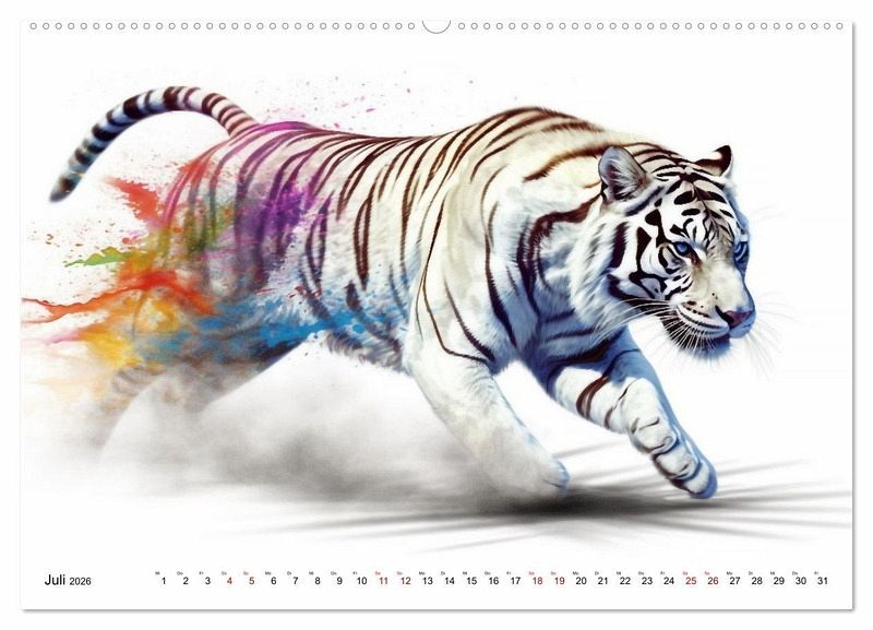 Wer liebt sie nicht, die kraftvollen Raubkatzen mit ihren aufregenden Fellzeichnungen und eleganten Sprüngen. Ebenso aber auch die Bären, Wölfe und anderen Raubtiere, die kraftvoll, klug und unbeirrt ihre Beute verfolgen. Wir lieben sie - und nun können Sie sie zwölf Monate lang bestaunen in ihrer Kraft. Dieser Kalender wurde erstellt mit Kreativität, Fantasie, künstlicher Intelligenz und Photoshop