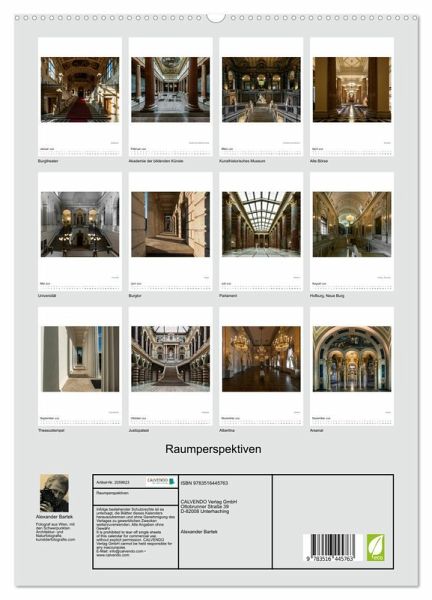Menschenleer, harmonisch ausgewogen und mit faszinierender Betonung der Raumperspektive. So zeigt dieser Bildkalender die schönsten Kunsträume Wiens, von der Albertina bis zum Theseustempel, von der Hofburg bis zum Parlament.