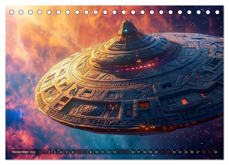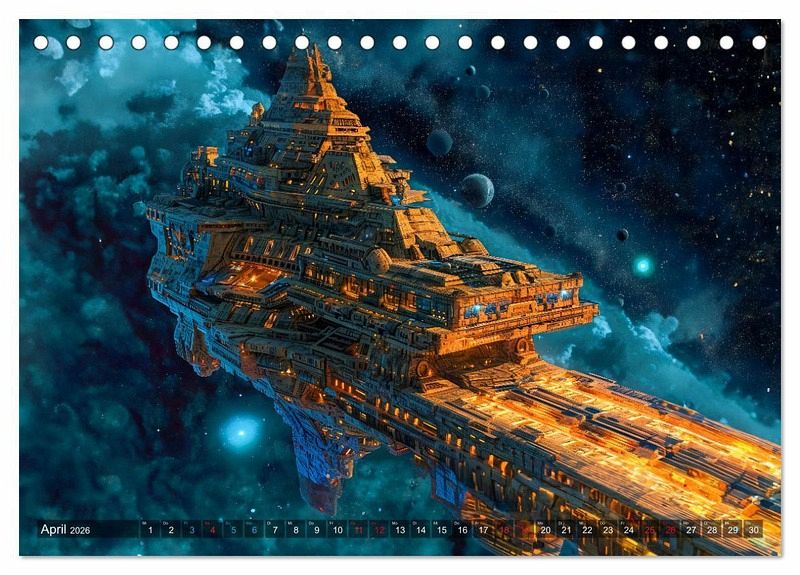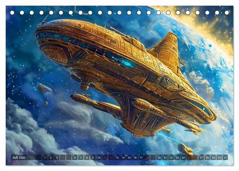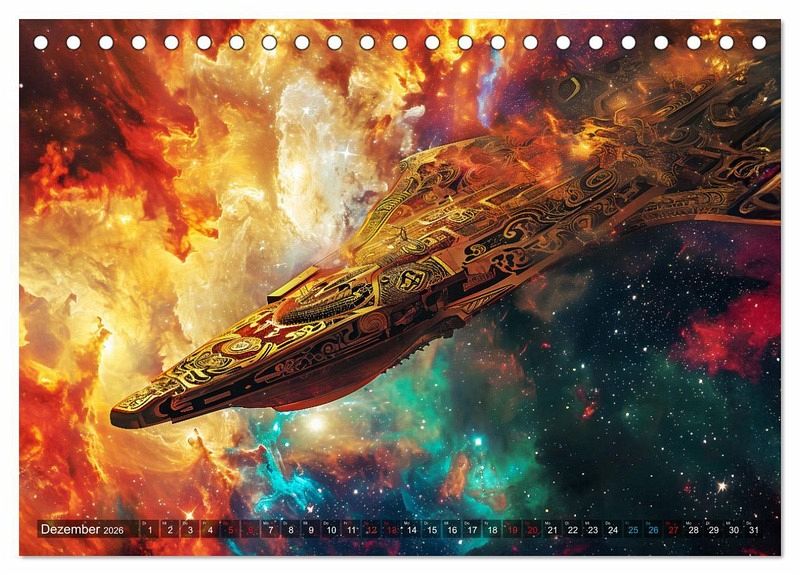 Entdecken Sie mit dem Kalender "Raumschiffe - Im Universum durch Raum und Zeit" faszinierende Visionen futuristischer Raumfahrzeuge. Tauchen Sie ein in die atemberaubende KI-generierte Welt der intergalaktischen Reisen und lassen Sie sich von diesem einzigartigen Geschenk für Weltraum-Enthusiasten verzaubern. Jeder Monat enthüllt ein neues meisterhaft gestaltetes Raumschiff, das die Vorstellungskraft anregt und die Schönheit des Universums einfängt.