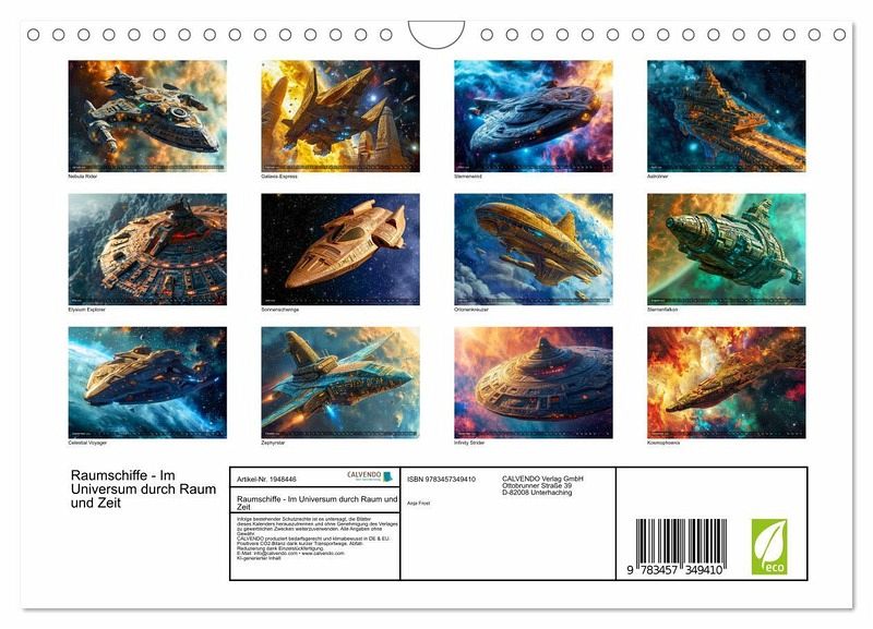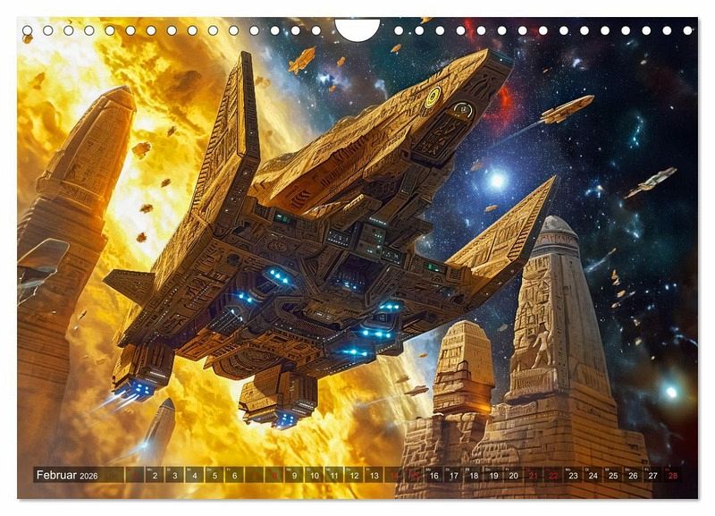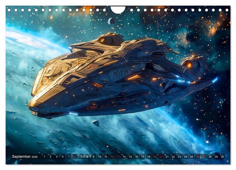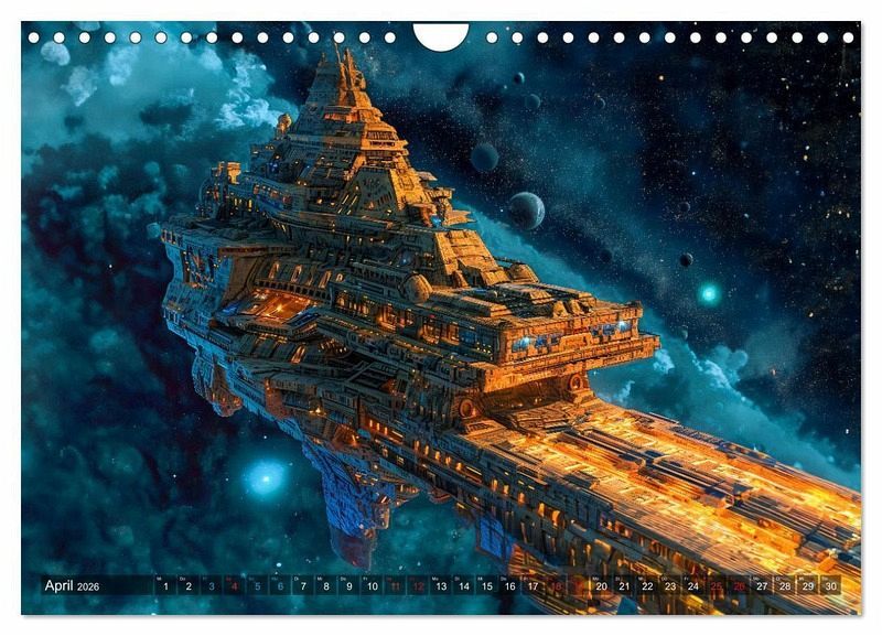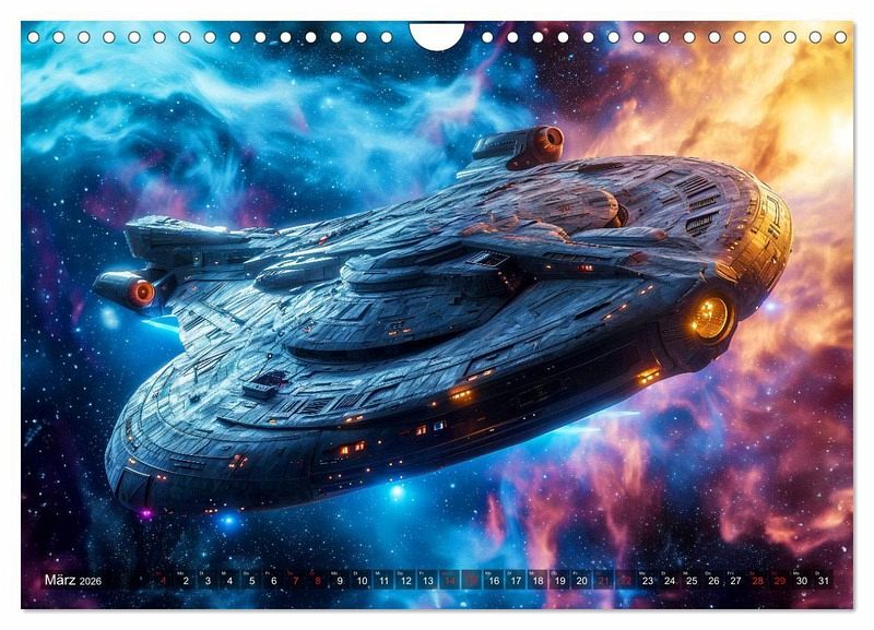 Entdecken Sie mit dem Kalender "Raumschiffe - Im Universum durch Raum und Zeit" faszinierende Visionen futuristischer Raumfahrzeuge. Tauchen Sie ein in die atemberaubende KI-generierte Welt der intergalaktischen Reisen und lassen Sie sich von diesem einzigartigen Geschenk für Weltraum-Enthusiasten verzaubern. Jeder Monat enthüllt ein neues meisterhaft gestaltetes Raumschiff, das die Vorstellungskraft anregt und die Schönheit des Universums einfängt.
