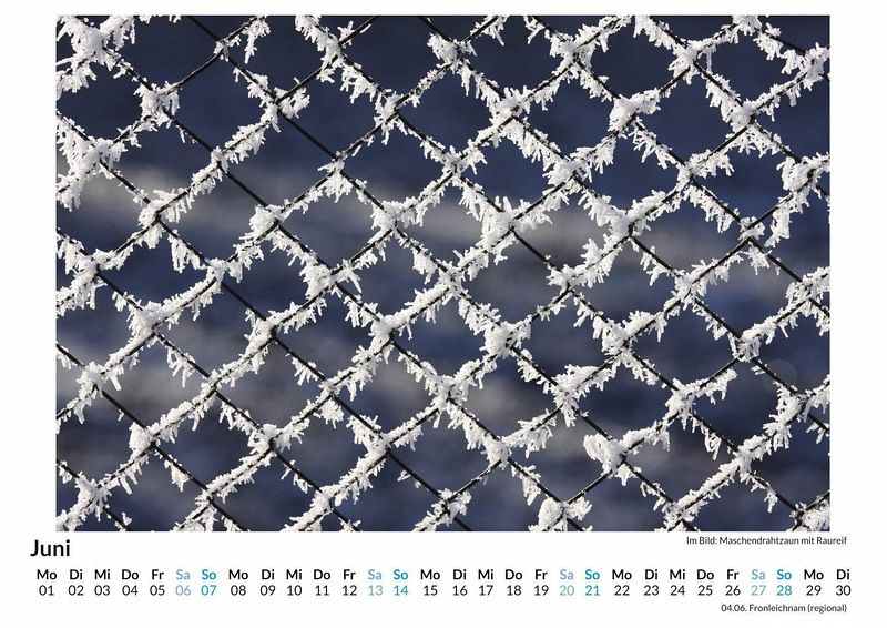 Entdecken Sie die magische Schönheit des Winters mit unserem exklusiven Wandkalender "Raureif - Winterimpressionen". Lassen Sie sich Monat für Monat von atemberaubenden Aufnahmen verzaubern, die die filigrane Pracht von Raureif in all seinen Facetten zeigen. Jedes der 12 sorgfältig ausgewählten Motive fängt die stille Eleganz frostiger Landschaften ein und bringt winterliche Ruhe in Ihr Zuhause. Gedruckt auf hochwertigem, lichtbeständigem Bilderdruckpapier und in Deutschland auf FSC-zertifiziertem Papier produziert, vereint dieser Kalender Ästhetik und Nachhaltigkeit. Perfekt als Geschenk oder für die eigene Wand - holen Sie sich die Magie des Winters nach Hause! Hochwertig Erleben Sie ein Jahr voller Eleganz mit unserem Premium-Fotokalender. Jedes der 12 Motive ist auf hochwertigem, lichtbeständigem Bilderdruckpapier gedruckt, um die Lebendigkeit jedes Bildes zu bewahren. Die robuste Spiralbindung gewährleistet Langlebigkeit und einfache Handhabung. Nachhaltig Unser Engagement für die Umwelt spiegelt sich in jedem Exemplar wider. Durch die Produktion auf Abruf reduzieren wir signifikant unseren Abfall. Wir verwenden ausschließlich umweltfreundliches, FSC-zertifiziertes Papier. Stolz gefertigt in Deutschland, achten wir bei unserer Logistik auf Klimaschutz, um unseren ökologischen Fußabdruck zu minimieren. Das ideale Geschenk Dieser Kalender ist das perfekte Präsent für jeden Anlass - ob Weihnachten, Geburtstage oder einfach als liebevolle Aufmerksamkeit zwischendurch. Geeignet für Freunde, Familie, Kinder und Erwachsene gleichermaßen, bereichert er jedes Zuhause mit seiner Vielfalt und Schönheit, unabhängig vom Alter der Beschenkten.
