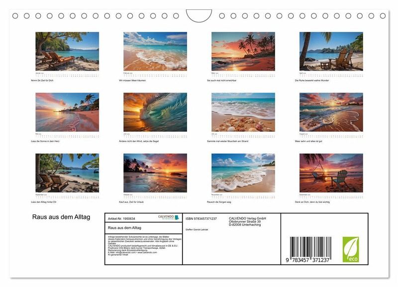Hochwertiger Wandkalender mit 12 wunderschönen Bildern. Unsere Umwelt liegt uns am Herzen. Daher verwenden wir ausschließlich FSC-zertifizierte Papiere aus verantwortungsvoller Waldwirtschaft. Wir vermeiden Überproduktion und somit deutliche Abfallmengen, da wir bedarfsgerecht in Einzelfertigung in Deutschland (Made in Germany) produzieren. Wir halten unsere Transportwege kurz und sorgen für eine klimabewusste Logistik.