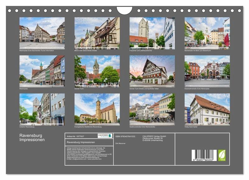 QUALITÄT - Hochwertiger Fotokalender mit 12 wunderschönen Motiven auf lichtbeständigem Bilderdruckpapier, robuste Spiralbindung mit Aufhängebügel.NACHHALTIG - deutliche Abfallreduzierung durch bedarfsgerechte Einzelstückfertigung, umweltfreundliches FSC-zertifiziertes Papier, Produktion in Deutschland, klimabewusste Logistik.PERFEKTES GESCHENK - Kalender für Freunde und Familie, für Kinder und Erwachsene, jung und alt, zu Weihnachten, Geburtstag oder zwischendurch.VIELFALT - Bildkalender in verschiedenen Formaten, z.B. DIN A5, DIN A4, DIN A3 sowie DIN A2. Ob Naturmotiv, Gemälde oder Fotos, ideal für ein persönliches Wohlfühlambiente.Zu Besuch in der wunderschönen Stadt Ravensburg von Autor(in): Dirk Meutzner