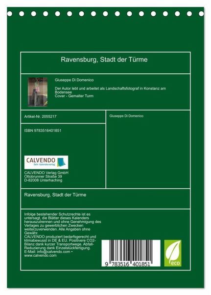 QUALITÄT - Hochwertiger Fotokalender mit 12 wunderschönen Motiven auf lichtbeständigem Bilderdruckpapier, robuste Spiralbindung.NACHHALTIG - deutliche Abfallreduzierung durch bedarfsgerechte Einzelstückfertigung, umweltfreundliches FSC-zertifiziertes Papier, Produktion in Deutschland, klimabewusste Logistik.PERFEKTES GESCHENK - Kalender für Freunde und Familie, für Kinder und Erwachsene, jung und alt, zu Weihnachten, Geburtstag oder zwischendurch.VIELFALT - Bildkalender in verschiedenen Formaten, z.B. DIN A5, DIN A4, DIN A3 sowie DIN A2. Ob Naturmotiv, Gemälde oder Fotos, ideal für ein persönliches Wohlfühlambiente.Ravensburg, Stadt der Türe und Tore in Oberschwaben von Autor(in): Giuseppe Di Domenico
