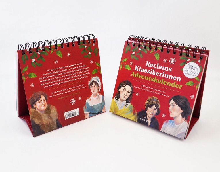Im Laufe der Geschichte haben Frauen in der Literatur immer wieder ihre Stimmen erhoben. Ob ironisch, rebellisch oder poetisch: Viele ihrer Zitate und Sprüche sind und bleiben zeitlos und fesselnd. Dieser hochwertige Adventskalender zum Aufstellen versammelt 24 der besten Weisheiten berühmter Frauen aus Literatur und Poesie. Eine Kraft- und Inspirationsquelle für jeden Tag im Advent. Die liebevollen Illustrationen der Künstlerin Lara Paulussen fangen den einzigartigen Charakter der berühmten Frauen auf ganz besondere Weise ein. Ein literarischer Begleiter durch die Vorweihnachtszeit und ein Blickfang für jeden Schreibtisch und jedes Regal.
