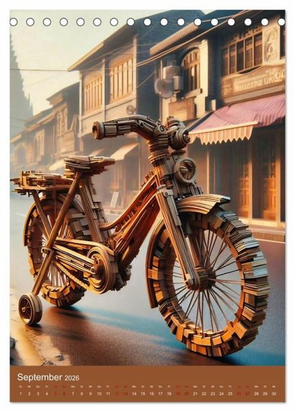 September: Fahrrad ohne Elektroantrieb, aus Holzresten