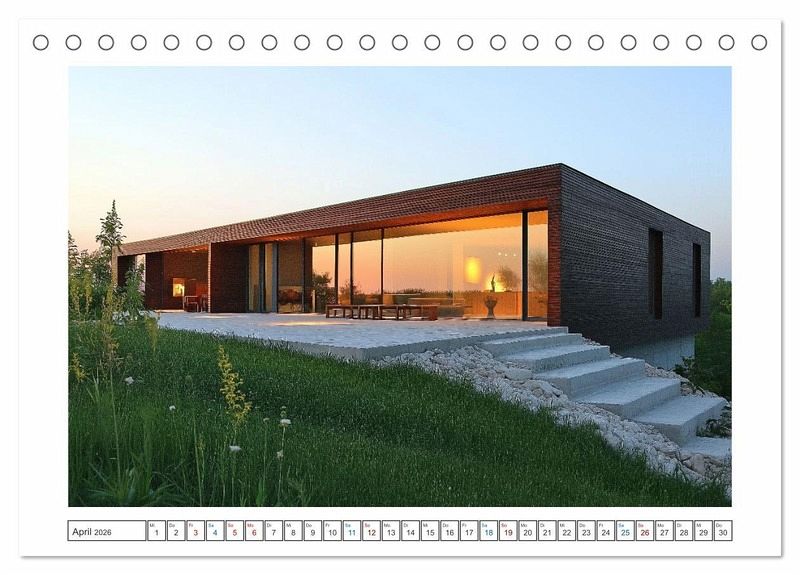 Erleben Sie die pure Schönheit der Reduktion bei der minimalistische Architektur. Sie vereint Eleganz und Funktionalität auf einzigartige Weise. Klare Linien, offene Räume und natürliche Materialien schaffen ein harmonisches Zusammenspiel von Raum und Licht. Jedes Detail ist durchdacht, jedes Element unverzichtbar. Keine Ablenkungen, nur der Fokus auf das Wesentliche: zeitlose Ästhetik und höchste Qualität. Entdecken Sie, wie Minimalismus Ruhe und Klarheit in Ihre Lebensräume bringt. Gestalten Sie Ihre Umgebung mit Architektur, die Ihnen Freiraum gibt - für das, was wirklich zählt. Alle hier gezeigten Bilder wurden mit Sorgfalt, Liebe und mit Hilfe einer KI generiert. Abschließend werden sie mit Bildbearbeitungsprogrammen überarbeitet und in den Kalender eingefügt.