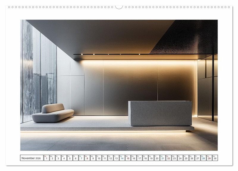 Erleben Sie die pure Schönheit der Reduktion bei der minimalistische Architektur. Sie vereint Eleganz und Funktionalität auf einzigartige Weise. Klare Linien, offene Räume und natürliche Materialien schaffen ein harmonisches Zusammenspiel von Raum und Licht. Jedes Detail ist durchdacht, jedes Element unverzichtbar. Keine Ablenkungen, nur der Fokus auf das Wesentliche: zeitlose Ästhetik und höchste Qualität. Entdecken Sie, wie Minimalismus Ruhe und Klarheit in Ihre Lebensräume bringt. Gestalten Sie Ihre Umgebung mit Architektur, die Ihnen Freiraum gibt - für das, was wirklich zählt. Alle hier gezeigten Bilder wurden mit Sorgfalt, Liebe und mit Hilfe einer KI generiert. Abschließend werden sie mit Bildbearbeitungsprogrammen überarbeitet und in den Kalender eingefügt.