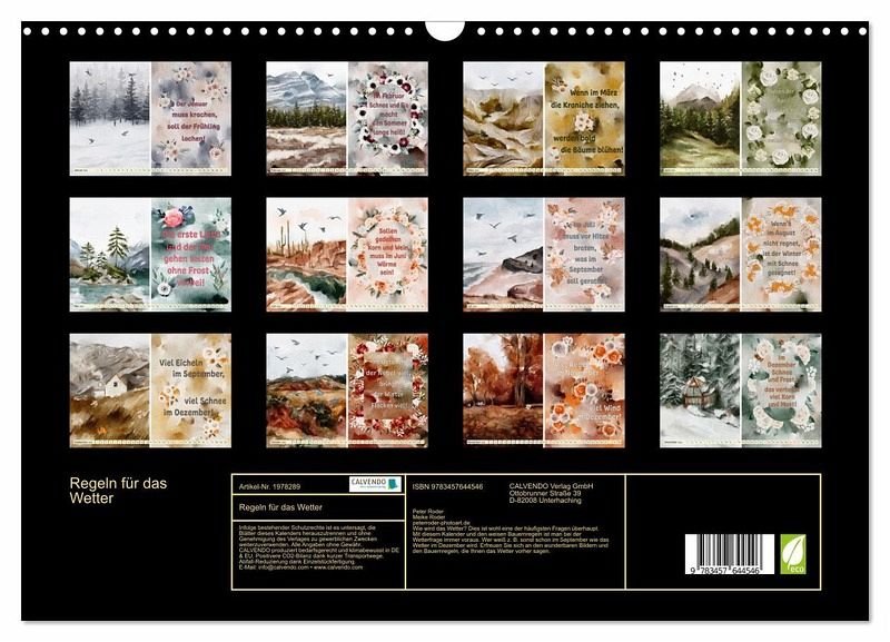 QUALITÄT - Hochwertiger Fotokalender mit 12 wunderschönen Motiven auf lichtbeständigem Bilderdruckpapier, robuste Spiralbindung mit Aufhängebügel.NACHHALTIG - deutliche Abfallreduzierung durch bedarfsgerechte Einzelstückfertigung, umweltfreundliches FSC-zertifiziertes Papier, Produktion in Deutschland, klimabewusste Logistik.PERFEKTES GESCHENK - Kalender für Freunde und Familie, für Kinder und Erwachsene, jung und alt, zu Weihnachten, Geburtstag oder zwischendurch.VIELFALT - Bildkalender in verschiedenen Formaten, z.B. DIN A5, DIN A4, DIN A3 sowie DIN A2. Ob Naturmotiv, Gemälde oder Fotos, ideal für ein persönliches Wohlfühlambiente.Über Generationen weitergegeben, sind die Wetter- und Bauernregeln auch heute noch beliebt wie eh und je. von Autor(in): Peter Roder