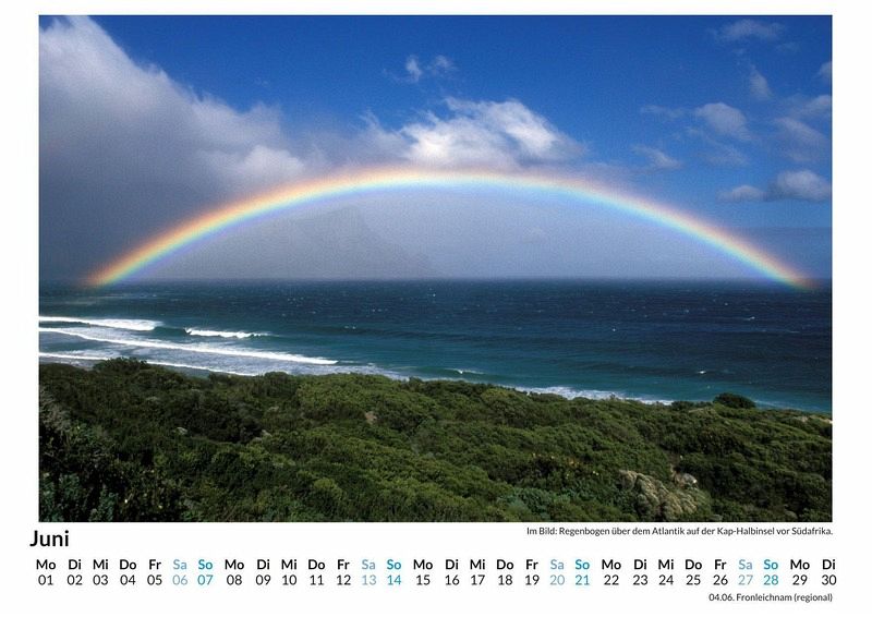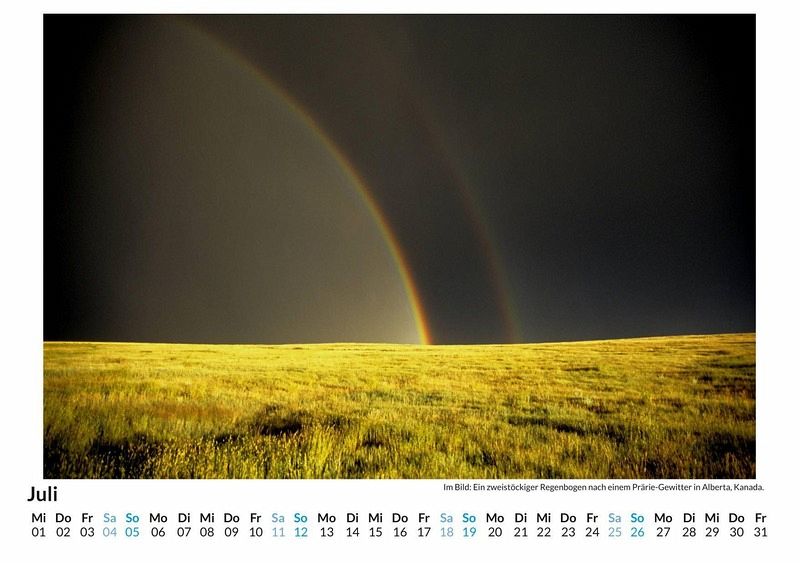 Erleben Sie die Magie des Regenbogens das ganze Jahr über mit unserem hochwertigen Wandkalender! Jeder Monat überrascht Sie mit einem atemberaubenden Regenbogen-Motiv, das Ihre Wände in leuchtenden Farben erstrahlen lässt. Gedruckt auf lichtbeständigem, FSC-zertifiziertem Bilderdruckpapier, garantiert dieser Kalender nicht nur brillante Farben, sondern auch Nachhaltigkeit. Hergestellt in Deutschland, vereint er Qualität und Umweltbewusstsein. Perfekt für Ihr Zuhause oder als Geschenk - holen Sie sich die Schönheit der Natur direkt in Ihre vier Wände! Lassen Sie sich Monat für Monat von der Vielfalt der Regenbogen faszinieren. Hochwertig Erleben Sie ein Jahr voller Eleganz mit unserem Premium-Fotokalender. Jedes der 12 Motive ist auf hochwertigem, lichtbeständigem Bilderdruckpapier gedruckt, um die Lebendigkeit jedes Bildes zu bewahren. Die robuste Spiralbindung gewährleistet Langlebigkeit und einfache Handhabung. Nachhaltig Unser Engagement für die Umwelt spiegelt sich in jedem Exemplar wider. Durch die Produktion auf Abruf reduzieren wir signifikant unseren Abfall. Wir verwenden ausschließlich umweltfreundliches, FSC-zertifiziertes Papier. Stolz gefertigt in Deutschland, achten wir bei unserer Logistik auf Klimaschutz, um unseren ökologischen Fußabdruck zu minimieren. Das ideale Geschenk Dieser Kalender ist das perfekte Präsent für jeden Anlass - ob Weihnachten, Geburtstage oder einfach als liebevolle Aufmerksamkeit zwischendurch. Geeignet für Freunde, Familie, Kinder und Erwachsene gleichermaßen, bereichert er jedes Zuhause mit seiner Vielfalt und Schönheit, unabhängig vom Alter der Beschenkten.