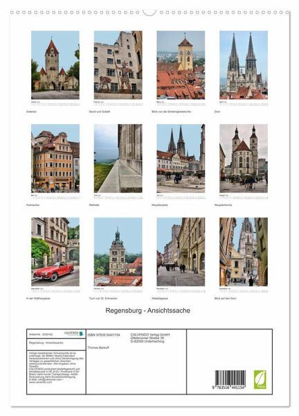 PREMIUM-LINIE - Brillanter Fotokalender mit 12 wunderschönen Motiven, Kunstdruck in Hochglanz in Museumsqualität.QUALITÄT - edle Materialien, stabile Rückwand mit 2 innovativen Einstecktaschen für eine optimale Präsentation an der Wand.NACHHALTIG - deutliche Abfallreduzierung durch bedarfsgerechte Einzelstückfertigung, umweltfreundliches FSC-zertifiziertes Papier, Produktion in Deutschland, klimabewusste Logistik.PERFEKTES GESCHENK - Kalender für Freunde und Familie, für Kinder und Erwachsene, jung und alt, zu Weihnachten, Geburtstag oder zwischendurch.12 interessante Ansichten von Regensburg von Autor(in): Thomas Bartruff