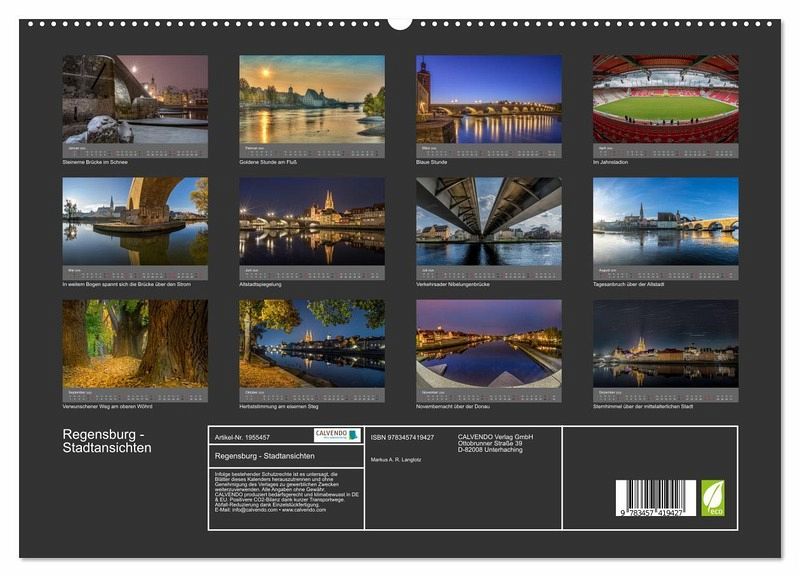 PREMIUM-LINIE - Brillanter Fotokalender mit 12 wunderschönen Motiven, Kunstdruck in Hochglanz in Museumsqualität.QUALITÄT - edle Materialien, stabile Rückwand mit 2 innovativen Einstecktaschen für eine optimale Präsentation an der Wand.NACHHALTIG - deutliche Abfallreduzierung durch bedarfsgerechte Einzelstückfertigung, umweltfreundliches FSC-zertifiziertes Papier, Produktion in Deutschland, klimabewusste Logistik.PERFEKTES GESCHENK - Kalender für Freunde und Familie, für Kinder und Erwachsene, jung und alt, zu Weihnachten, Geburtstag oder zwischendurch.Atemberaubende Ansichten der Donaustadt Regensburg von Autor(in): Markus A. R. Langlotz