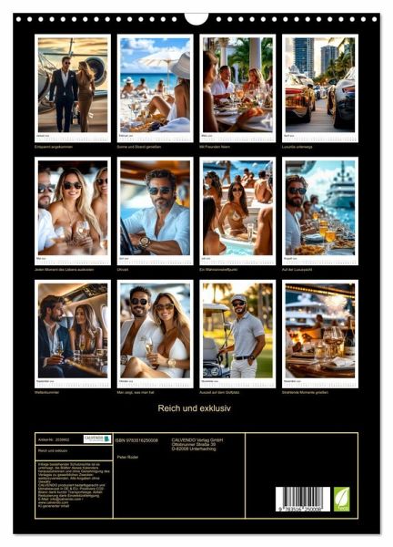 QUALITÄT - Hochwertiger Fotokalender mit 12 wunderschönen Motiven auf lichtbeständigem Bilderdruckpapier, robuste Spiralbindung mit Aufhängebügel.NACHHALTIG - deutliche Abfallreduzierung durch bedarfsgerechte Einzelstückfertigung, umweltfreundliches FSC-zertifiziertes Papier, Produktionin Deutschland, klimabewusste Logistik.PERFEKTES GESCHENK - Kalender für Freunde und Familie, für Kinder und Erwachsene, jung und alt, zu Weihnachten, Geburtstag oder zwischendurch.VIELFALT - Bildkalender in verschiedenen Formaten, z.B. DIN A5, DIN A4, DIN A3 sowie DIN A2. Ob Naturmotiv, Gemälde oder Fotos, ideal für ein persönliches Wohlfühlambiente.Die Faszination des Reichtums in einer Luxuswelt. von Autor(in): Peter Roder