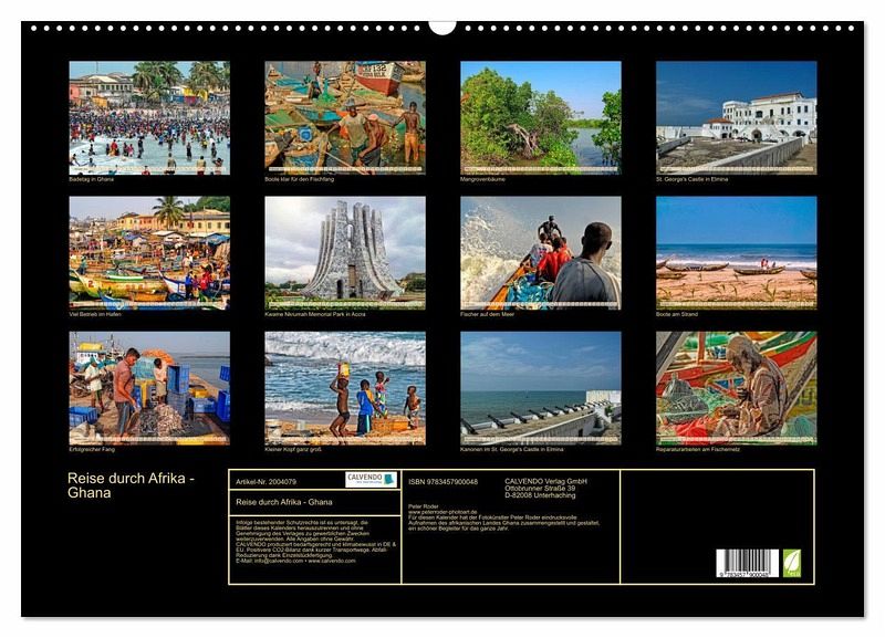 Für diesen Kalender hat der Fotokünstler Peter Roder eindrucksvolle Aufnahmen des afrikanischen Landes Ghana zusammengestellt und gestaltet, ein schöner Begleiter für das ganze Jahr.